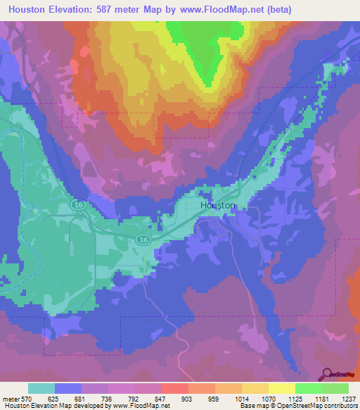 Elevation of Houston,Canada Elevation Map, Topography, Contour